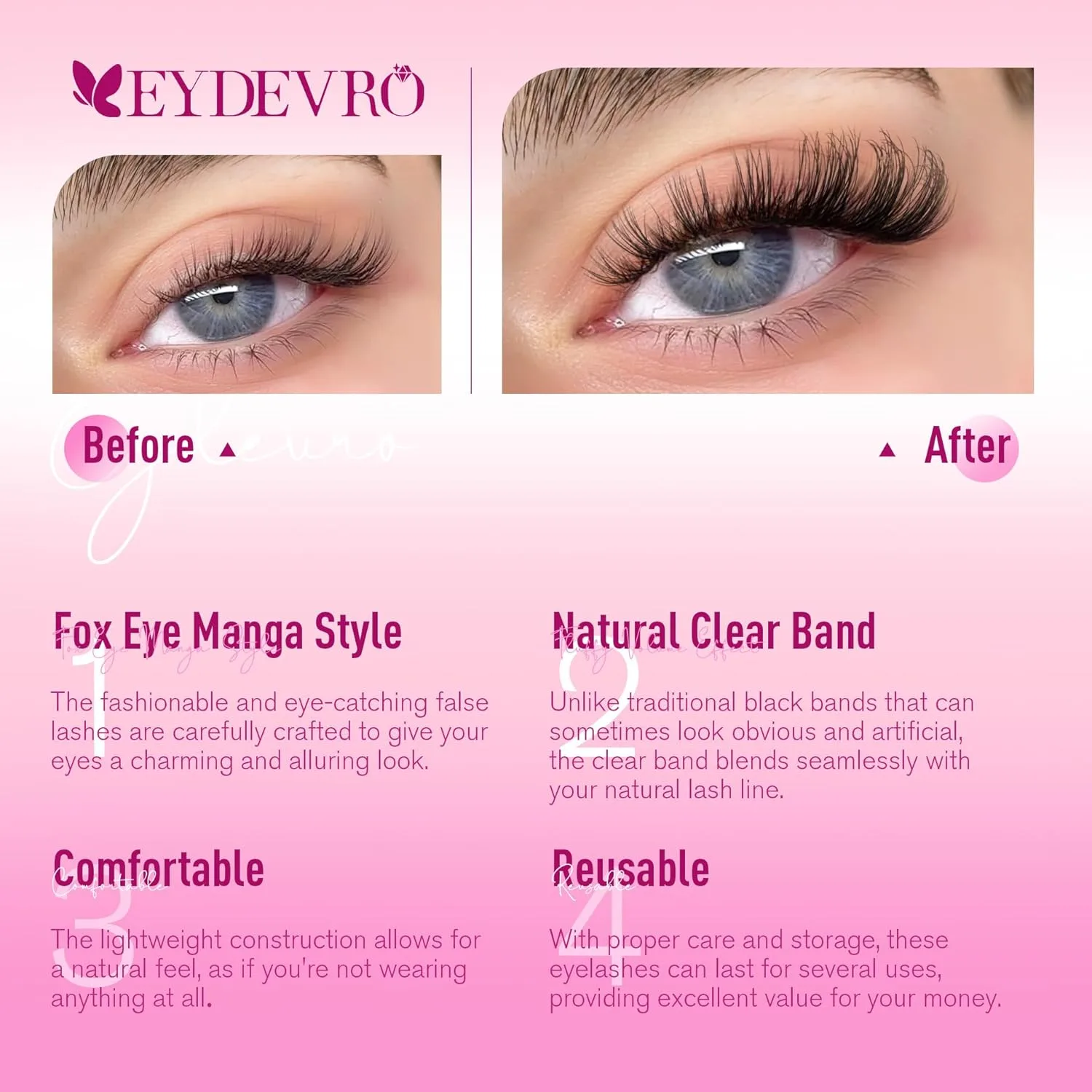 Imagine stepping into a world where achieving those coveted, captivating eyes is not just possible, but effortlessly simple. This is where the EYDEVRO False Eyelashes step in, beautifully crafted to be your secret weapon for an instantly mesmerizing gaze. Let’s delve into the magic behind their design and how each feature translates into a tangible boost for your confidence and style.