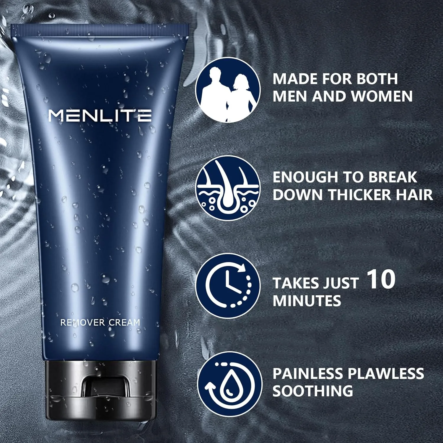 The Men's Hair Remover by MENLITE is designed for both men and women seeking an effortless and painless solution for hair removal. It's ideal for sensitive skin, offering convenience, ease, and long-lasting smoothness.